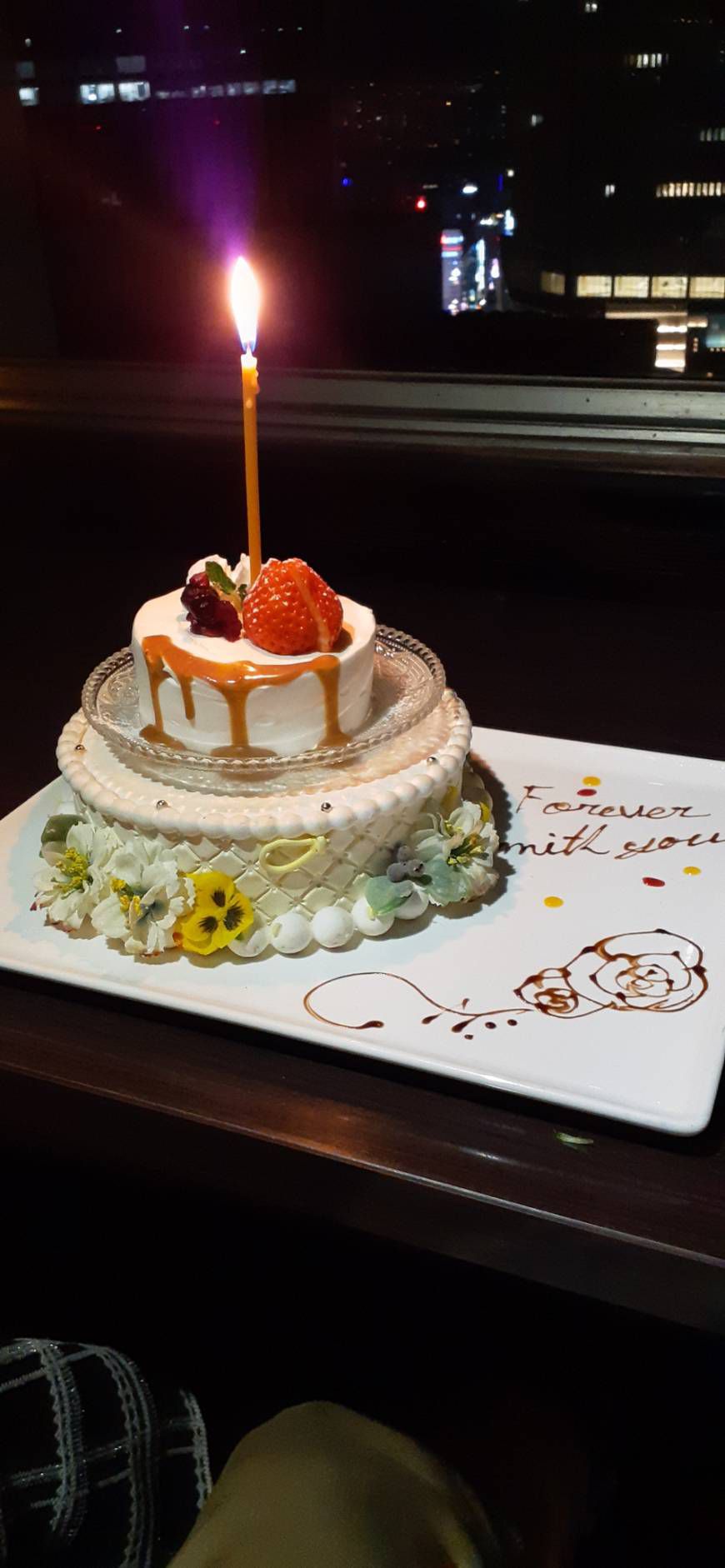 2月1日、仕上がったばかりの婚約指輪を手に彼は夜景の美しいレストランを予約。デザートプレートには「Forever with you」ずっとあなたと一緒にとプロポーズのメッセージが添えられていました。